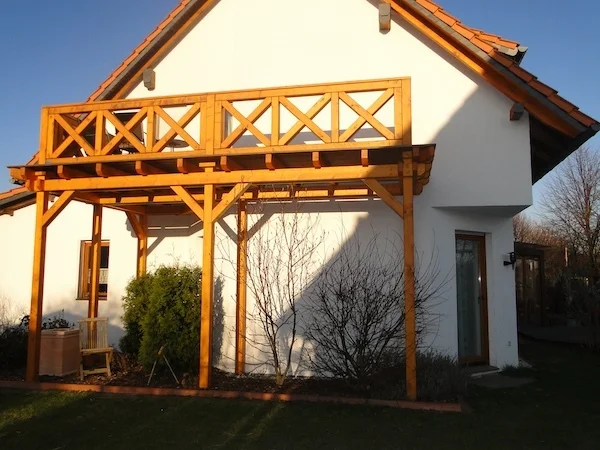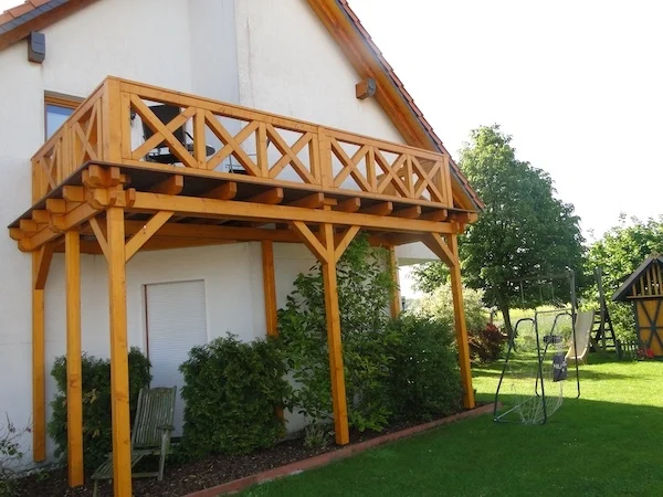 • Stahlkonstruktion: Bei Stahl-Holz-Kombinationen nutzen wir feuerverzinkten Stahl. Das ist langlebig und ideal für vorgestellte Balkone mit Stützen.